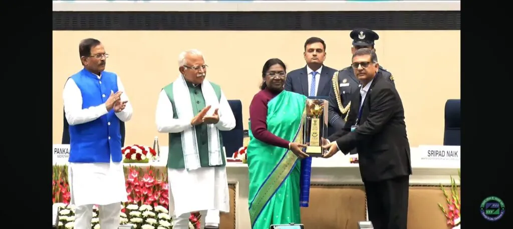 माननीय राष्ट्रपति श्रीमती द्रौपदी मुर्मू एवं माननीय विद्युत मंत्री श्री मनोहर लाल खट्टर द्वारा पुरस्कार प्रदान