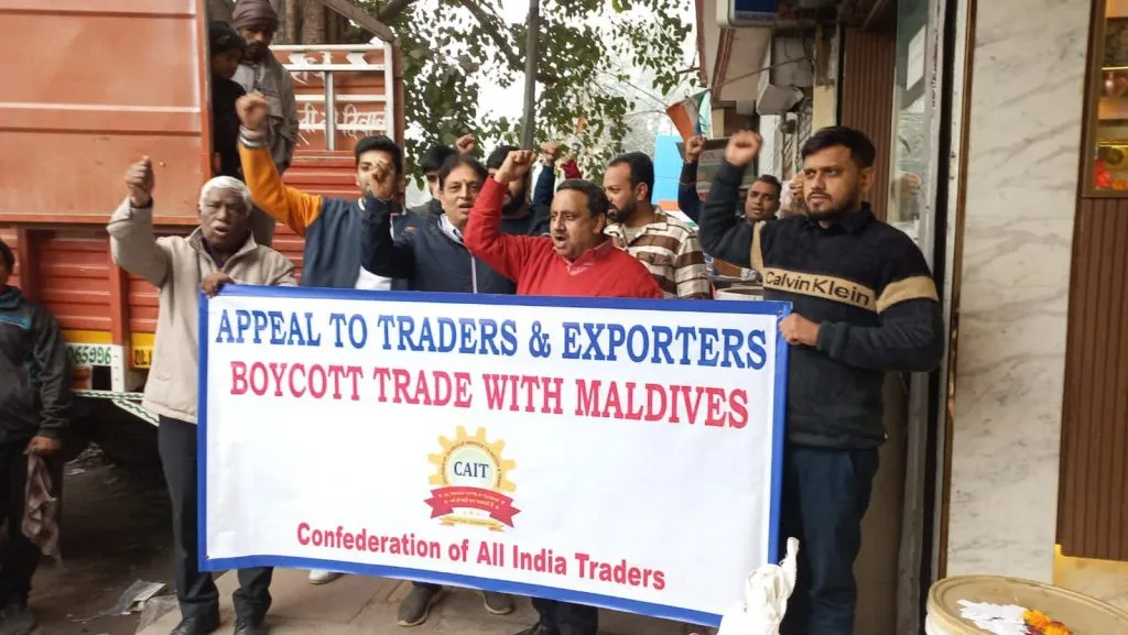 हाल ही में मालदीव के कुछ सरकारी लोगों द्वारा प्रधानमंत्री नरेंद्र मोदी के खिलाफ असम्मानजनक टिप्पणियों के जवाब में, कनफ़ेडरेशन ऑफ ऑल इंडिया ट्रेडर्स ( कैट) ने आज दिल्ली में एक प्रदर्शन मार्च का आयोजन किया, जिसमें व्यापारियों एवं निर्यातकों से मालदीव के साथ व्यापार स्थगित करने की ज़बरदस्त अपील की गई।