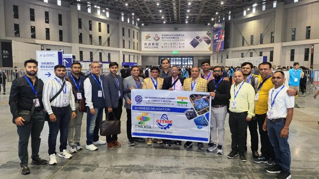 સુરતઃ ધી સધર્ન ગુજરાત ચેમ્બર ઓફ કોમર્સ એન્ડ ઈન્ડસ્ટ્રીના ઓલ એકઝીબીશન્સ ચેરમેન શ્રી બિજલ જરીવાલા અને ગૃપ ચેરમેન શ્રી કિરણ ઠુમ્મરની આગેવાનીમાં ૧૮ જણાના પ્રતિનિધિ મંડળે તા. ૧૪થી ૧૮ ઓકટોબર ર૦ર૪ દરમિયાન ચીનના શાંઘાઈ ખાતે ટેક્ષ્ટાઇલની અત્યાધુનિક મશીનરીનું એકઝીબીશન ‘ITMA ASIA + CITME’ની મુલાકાત લીધી હતી. આ સમયગાળા દરમિયાન શાંઘાઇ ખાતે યાર્ન મેન્યુફેકચરીંગ પ્લાન્ટ, વિવિંગ ફેકટરી, સરકયુલર નીટિંગ મશીનનું ઉત્પાદન કરતી ફેકટરી સહિત ટેક્ષ્ટાઇલની વિવિધ ફેકટરીઓની મુલાકાત લીધી હતી.