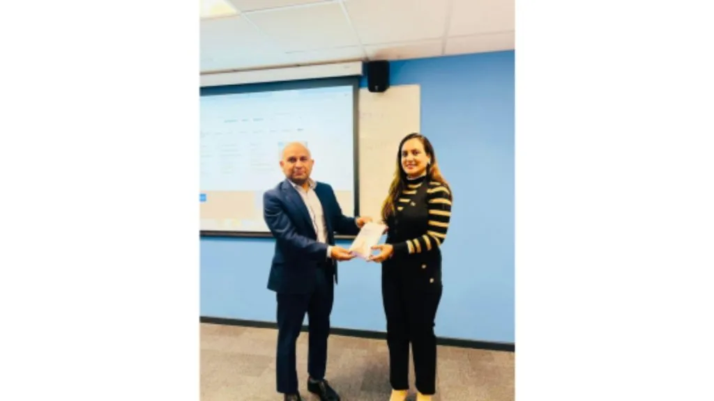 अपने व्याख्यान के बाद सोनल ने गिल्डहॉल स्कूल ऑफ बिजनेस में प्रोफेसर अरविंद उपाध्याय को अपनी पुस्तक 'नेशन कॉलिंग' भी भेंट की।