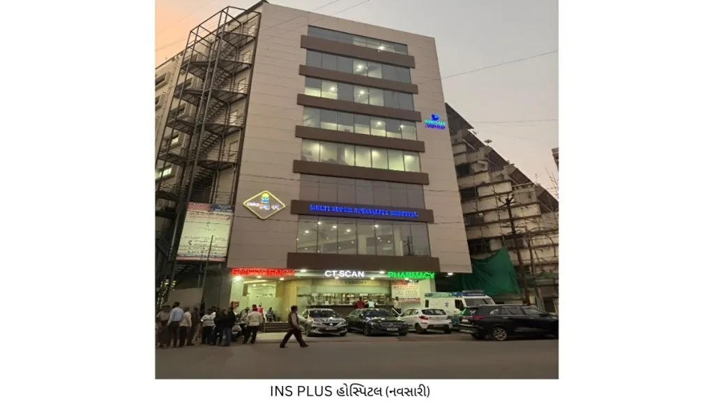 INS PLUS अस्पताल का शुभारंभ जनवरी 2023 में नवसारी में हुआ था और यह 35+ डॉक्टरों, 75 बिस्तरों और 200 स्टाफ के साथ एकमात्र अस्पताल है। नवसारी और आस-पास के इलाकों में निवासियों के लिए स्वास्थ्य से जुड़ी किसी भी समस्या का समाधान INS PLUS अस्पताल 24×7 अत्याधुनिक, सुपर स्पेशलिस्ट, विशेषज्ञ, अनुभवी और प्रतिष्ठित डॉक्टरों की टीम द्वारा सस्ती दरों पर प्रदान करता है। यह दक्षिण गुजरात का एकमात्र अस्पताल है जो अग्रणी स्थान पर है।