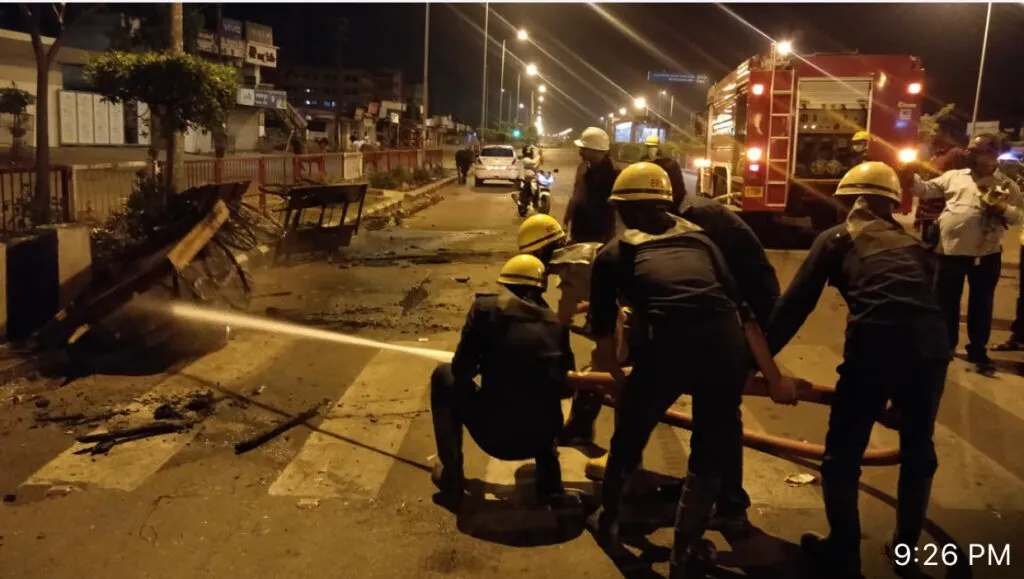 आग बुझाने के लिए दमकल पहुँचा