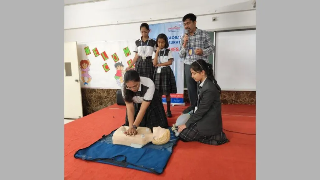 सूरत, 29 सितम्बर 2025: विश्व हृदय दिवस के अवसर पर वाइट लोटस इंटरनेशनल स्कूल (WLIS), वेसु ने सनशाइन ग्लोबल हॉस्पिटल्स की विशेषज्ञ चिकित्सा टीम के सहयोग से छात्रों और स्टाफ के लिए सीपीआर (कार्डियोपल्मोनरी रिससिटेशन) प्रशिक्षण सत्र आयोजित किया।